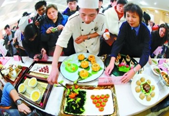 此外,在不斷推陳出新的同時,老字號們還對創新菜的實用性、流行率進行嚴格的追蹤。每月一統計,每半年一排名,不受老百姓歡迎的,即使是花力氣研究出的創新菜,也無法得到獎勵!皠撔虏吮仨氉プ∠M者的心思!本鄣氯A天技術總監黃建業說。