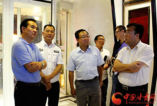 為全面貫徹落實(shí)市安委會(huì)第六次專題會(huì)議要求,按照嚴(yán)厲打擊安全生產(chǎn)領(lǐng)域典型非法違法行為專項(xiàng)行動(dòng)部署安排, 9月4日下午,蘭州市安監(jiān)局局長(zhǎng)鄭志強(qiáng)、市公安局副局長(zhǎng)吳學(xué)民等相關(guān)單位領(lǐng)導(dǎo)帶領(lǐng)聯(lián)合執(zhí)法組實(shí)地檢查城關(guān)、七里河兩區(qū)消防安全工作。