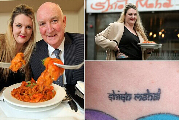 天下當真沒有免費的午餐嗎?據英國《鏡報》11月23日報道,英國30歲女子貝斯?弗爾茲(Beth Faulds)為了讓自己父親免費吃上最愛餐館的食物,真可謂無所不用其極——竟在自己的臀部紋上餐館標志以換取父親一年的免費用餐權。弗爾茲表示,之前送給父親的禮物,如酒、襪子、領帶之類的,父親幾乎都是找了個地方收起來,然后轉頭就忘了。一天,弗爾茲在Facebook上看到格拉斯哥一家名為Shish Mahal的餐廳發布了一則消息,稱若是有人在身上紋上該餐廳的名字,將獲得一年免費用餐權。由于弗爾茲的父親非常喜歡這家餐廳,因此為了送父親一份特別的禮物,弗爾茲就在自己的臀部將這家餐館的標志紋了上去。