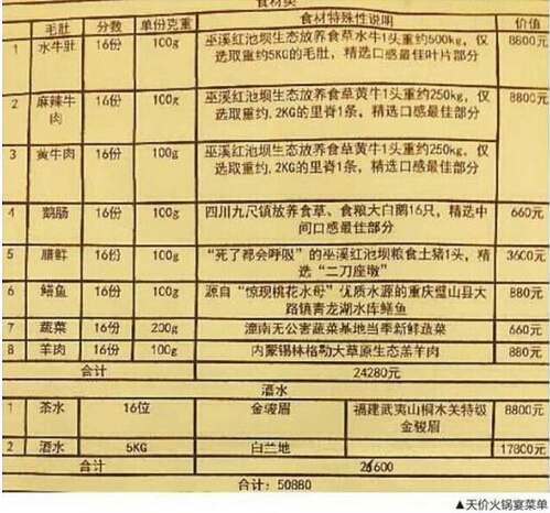24280元菜金,26600元茶酒錢,一桌火鍋年夜飯總消費50880元。你以為有錢就能當(dāng)個任性的吃貨?大錯特錯!
