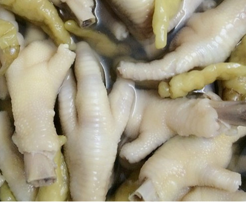 此次查獲的僵尸肉中,雞爪占了相當(dāng)大的比例。此前,南寧警方發(fā)現(xiàn)一些雞爪中包裝日期顯示封存于1967年。這將近“50歲”的雞爪,想必沒有人敢吃。但是這些雞爪在經(jīng)過特殊處理后,一般人很難分辨。比如重辣的泡椒鳳爪,可以將過期雞爪本身的刺鼻味道掩蓋。
