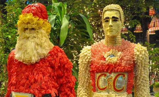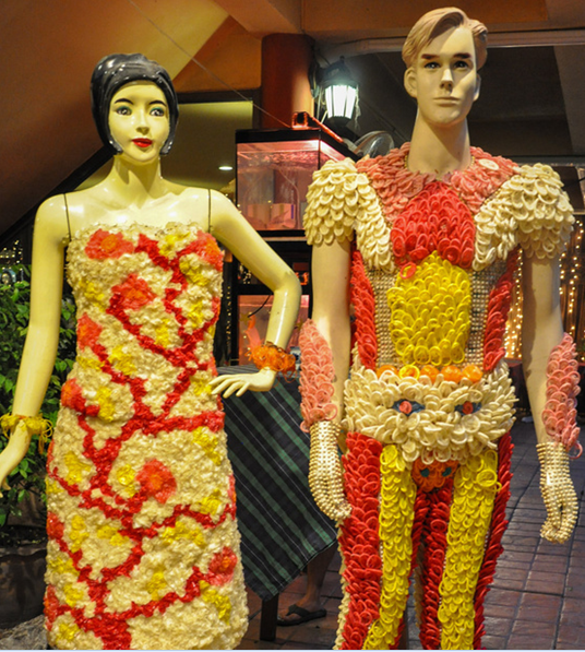 餐廳院子里擺的人形模特讓人眼前一亮,他們都穿著用上萬個避孕套做成的五彩衣服,這樣的配色,這樣的做工恰當的剛剛好,沒有一絲瑕疵和多余,完全可以稱得上是藝術品。