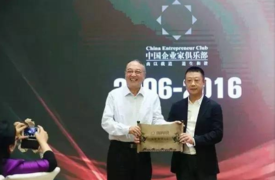 中國企業(yè)家俱樂部主席柳傳志為海底撈張勇授牌