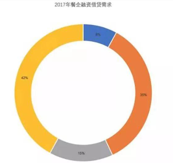 同時為了快速占領市場,2017年上半年有過半餐飲企業都存在著融資借貸的需求,但由于傳統借貸模式的成本和繁瑣度較高,餐飲企業的融資需求依舊有很多需要填補。